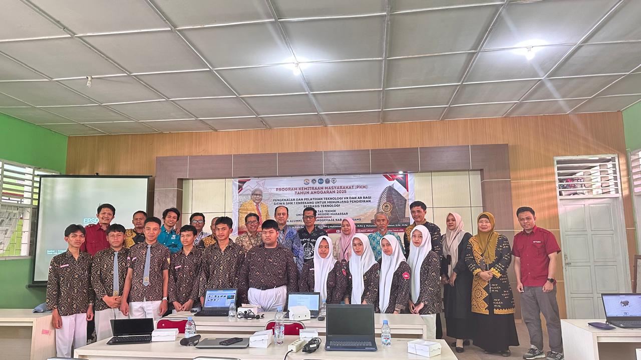 WARTAKATA.ID, ENREKANG — Fakultas Teknik Universitas Negeri Makassar (UNM) melaksanakan kegiatan Program Kemitraan Masyarakat (PKM) Tahun Anggaran 2025 bertema “Pengenalan dan Pelatihan Teknologi VR dan AR untuk Siswa SMK Negeri 1 Enrekang dalam Mendukung Pendidikan Berbasis Teknologi.” Program ini didanai melalui Dana PNBP Pengabdian Masyarakat Fakultas Teknik UNM, sebagai bagian dari komitmen institusi dalam memperluas dampak teknologi pendidikan ke daerah.